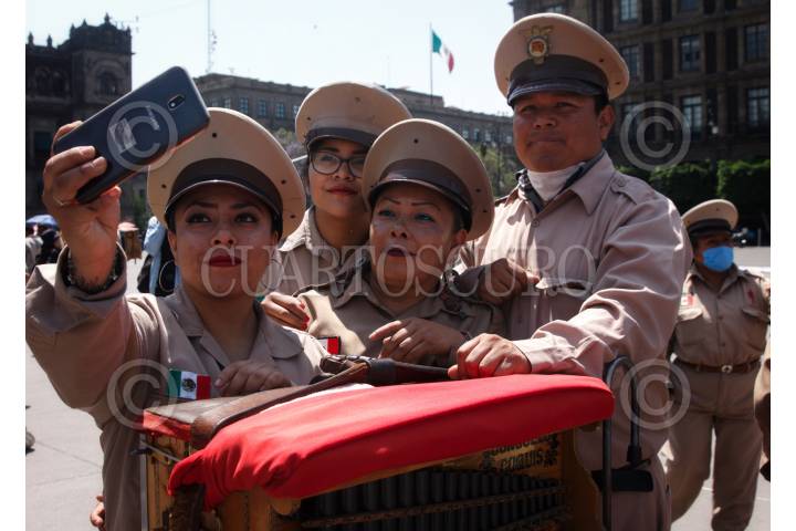 CIUDAD DE MÉXICO, 31MARZO2020.- Organilleros del Centro Histórico de la Ciudad, se manifestaron en el Zócalo capitalino para pedir apoyo del Gobierno por el virus COVID-19. Los organilleros continúan trabajando, no cuentan con seguro ya que son del sector de comercio informal y están siendo afectados por la baja afluencia de personas. FOTO: ANDREA MURCIA/CUARTOSCURO.COM