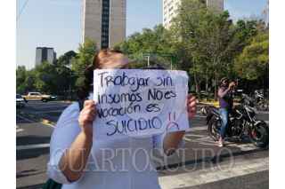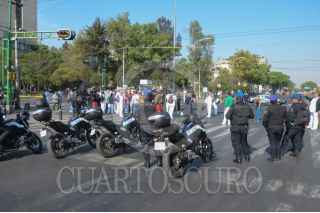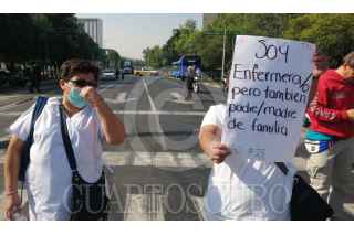 CIUDAD DE MÉXICO, 31MARZO2020.- Médicos y enfermeras del Instituto Mexicano del Seguro Social (IMSS) Clínica 27, bloquearon el cruce de Eje Central y Manuel González como protesta por la falta de insumos, material quirúrgico y equipo. FOTO: ARMANDO MONROY/CUARTOSCURO.COM