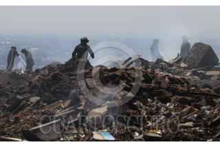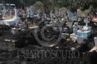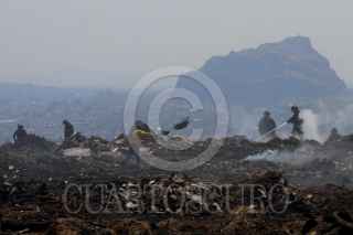 CIUDAD DE MÉXICO, 01ABRIL2020.- Elementos de la Comisión De Recursos Naturales (CORENA), bomberos y una pipa de agua de la alcaldía Iztapalapa recurrieron al lugar de los resagos de un incendio en el Cerro de la Estrella. El lugar afectado es la zona donde se encontraba un basurero y cascajo del panteón que se encuentra dentro del cerro, el cual mide 2400 metros cuadrados. La segunda parte afectada fue en el panteón en la zona de los niños, conocida como "Panteon de los Ángeles". FOTO: GRACIELA LÓPEZ /CUARTOSCURO.COM