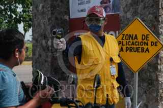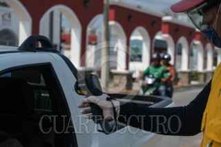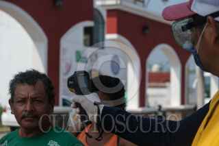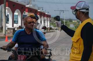 TENOSIQUE, TABASCO, 01ABRIL2020.- la Secretaria de Salud a nivel municipal mantiene un puesto de control en la entrada al municipio donde verifican la temperatura de toda personas que entre a la localidad como parte de las medidas que se han tomado debido a la contingencia por la pandemia de COVID 19. FOTO: ISABEL MATEOS /CUARTOSCURO.COM