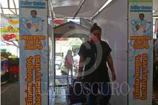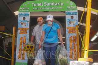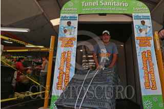 GUADALAJARA, JALISCO, 01ABRIL2020.- Autoridades de la Unión de Comerciantes del Marcado de Abastos (UCMA) en conjunto con comerciantes del mismo, instalaron el segundo túnel sanitario en la calle 9 del Mercado de Abastos, esto como medida de seguridad y prevención de contagios masivos ante la pandemia de coronavirus Covid-19 en el estado. FOTO: FERNANDO CARRANZA GARCIA / CUARTOSCURO.COM