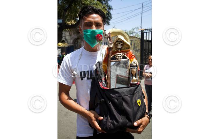 CIUDAD DE MÉXICO, 01ABRIL2020.- Pese a las recomendaciones de la Secretaría de Salud de quedarse en casa, decenas de creyentes de la Santa Muerte se congregaron en la calle Alfarería en Tepito, donde ya es tradición ir el primero de cada mes. FOTO: ANDREA MURCIA/CUARTOSCURO.COM