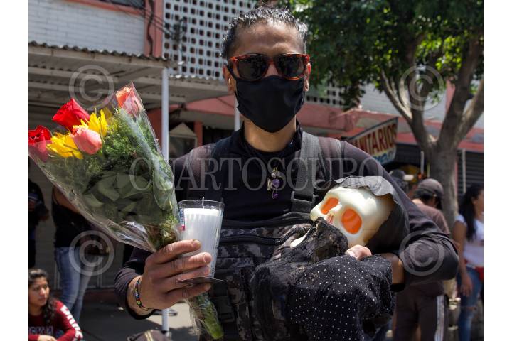 CIUDAD DE MÉXICO, 01ABRIL2020.- Pese a las recomendaciones de la Secretaría de Salud de quedarse en casa, decenas de creyentes de la Santa Muerte se congregaron en la calle Alfarería en Tepito, donde ya es tradición ir el primero de cada mes. FOTO: ANDREA MURCIA/CUARTOSCURO.COM