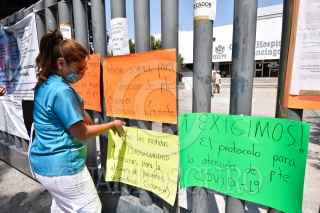 CHILPANCINGO, GUERRERO, 01ABRIL2020.- Trabajadores de la Clínica Hospital del ISSSTE de Chilpancingo, en el estado de Guerrero, se manifestaron al exterior de este nosocomio para exigir a las autoridades las condiciones y el equipo necesario para la atención de pacientes con COVID-19; dado que no cuentan ni con lo básico para esto y de seguir así se podría dar un contagio masivo con los pacientes de este lugar. Señalaron que actualmente no se cuentan con las medidas de seguridad sanitaria necesarias para esta labor, además de que se han mandado a hacer pruebas a una persona de la tercera edad, la cual presentó algunas. FOTO: DASSAEV TÉLEZ ADAME/CUARTOSCURO.COM