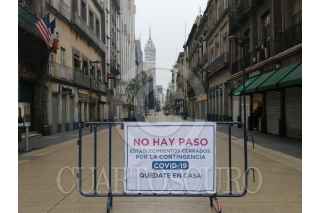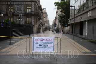 CIUDAD DE MÉXICO, 01ABRIL2020.- La actividad comercial en la calle de Madero a parado totalmente desde la mañana la policía había acordonado la zona, pero las personas seguían pasando, por lo que en la tarde ya se cerró el paso al cien por ciento, esto para reforzar el llamamiento de las autoridades locales y federales a la sociedad de quedarse en casa como una de las medidas principales para detener los contagios de Covid-19. FOTO: ARMANDO MONROY/CUARTOSCURO.COM