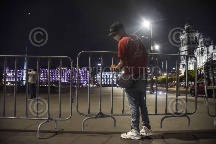CIUDAD DE MÉXICO, 01ABRIL2020.- A partir de esta noches plancha del zócalo fue cerrada como parte de las medidas de prevención ante la fase 2 de la pandemia de coronavirus (Covid-19). A partir de las 20:00 horas trabajadores colocaron barreras de seguridad metálicas para evitar la concentración de personas en la explanada. FOTO: MARIO JASSO /CUARTOSCURO.COM