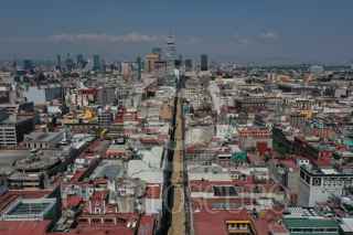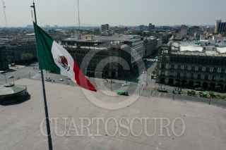 CIUDAD DE MÉXICO, 02ABRIL2020.- La plancha del Zócalo, así como la calle de Madero fueron cerradas por elementos de la Secretaría de Seguridad Ciudadana para exhortar a la ciudadanía a no acudir a lugares concurridos y a mantenerse en casa hasta que pase la Emergencia Sanitaria por Covid-19 en el país. Esta medida se suma al cierre de plazas comerciales, en días anteriores. Al corte informativo de ayer, se habían registrado 37 descensos y 1378 casos confirmados, donde la Ciudad de México ocupa el primer lugar en casos confirmados. FOTO: GALO CAÑAS /CUARTOSCURO.COM