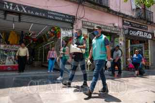 CIUDAD DE MÉXICO, 02ABRIL2020.- Trabajadores de gobierno vocearon con un altavoz la invitación a los comercios de la calle de Corregidora de cerrar sus cortinas esto como una medida de reforzamiento de la campaña "Quédate en casa", para evitar más contagios de Covid-19. FOTO: MOISÉS PABLO/CUARTOSCURO.COM