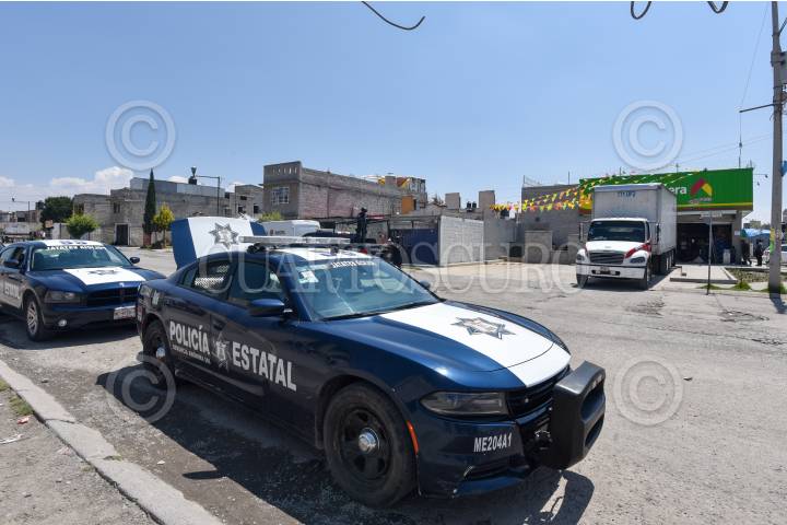 Durante la madrugada un grupo de hombres entró a saquear una tienda de Bodega Aurrerá express en la colonia Colinas del Sol, en Almoloya de Juárez, y durante esta mañana arrimaron policías estatales a vigilar la zona. FOTO: CRISANTA ESPINOSA AGUILAR /CUARTOSCURO.COM