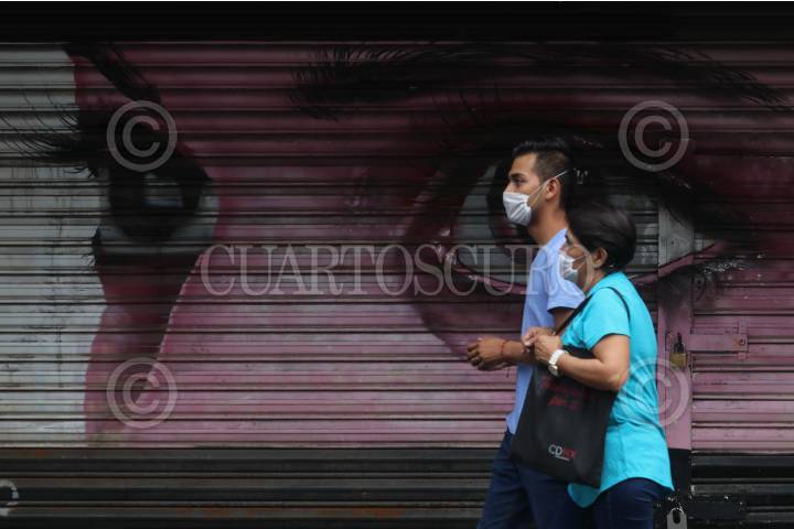 CIUDAD DE MÉXICO, 02ABRIL2020.- Capitalinos y personal de limpieza que transitan por el Centro Histórico utilizan cubrebocas como medida sanitaria ante el posible contagio del Covid-19. FOTO: GRACIELA LÓPEZ /CUARTOSCURO.COM