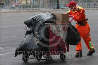 CIUDAD DE MÉXICO, 02ABRIL2020.- Capitalinos y personal de limpieza que transitan por el Centro Histórico utilizan cubrebocas como medida sanitaria ante el posible contagio del Covid-19. FOTO: GRACIELA LÓPEZ /CUARTOSCURO.COM