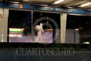 Ciudad de México, 03 abril 2020. Fumigación de las estaciones de la línea 2 del STCM que corre sobre calzada de Tlalpan, para evitar que se propague el Covid-19 entre los usuarios de esta línea. Foto: Luis Carbayo/cuartoscuro.com