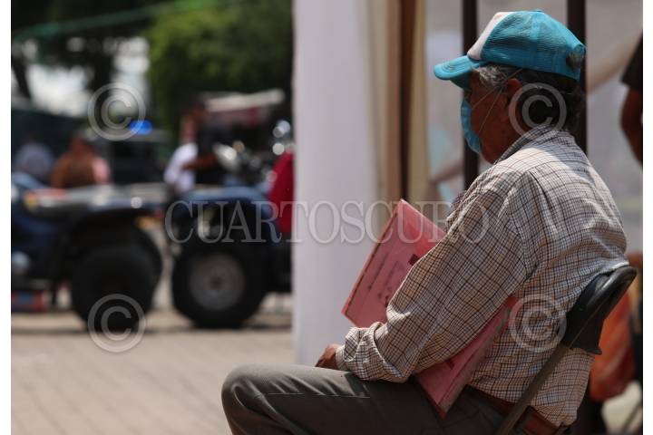 CIUDAD DE MÉXICO, 03ABRIL2020.- Decenas de personas de la tercera edad se dieron cita en la explanada de la alcaldía de Xochimilco para realizar el cobro de pensiones adelantas que el Gobierno Federal anunció como medida ante la pandemia de Coronavirus Covid-19. FOTO: GALO CAÑAS /CUARTOSCURO.COM