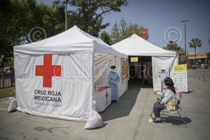 TIJUANA, BAJA CALIFORNIA, 03ABRIL2020.- Un filtro sanitario fue instalado en una plaza comercial ubicada en la Zona Río con el objetivo de brindar información y atender a personas que presenten síntomas de COVID-19. En el lugar no se realizan pruebas relacionadas con el virus, pero se evalúan y en caso de ser necesario se canalizan a la Jurisdicción Sanitaria para ser evaluados. La cifra de casos infectados de COVID-19 se elevó a 58, 32 en Mexicali y 26 en Tijuana. FOTO: OMAR MARTÍNEZ /CUARTOSCURO.COM