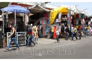 CIUDAD DE MÉXCO DE MÉXICO, 01ABRIL2020.- La mayoría de los comerciantes del tianguis de Tepito, continúan realizando las venta de mercancía, esto pese a que el gobierno de la capital ha prohibido los puestos de que no sean de alimentos. Cabe mencionar que aunque en menor cantidad se pueden observar rejas vacías de puestos que si suspendieron el comercio en el también llamado Barrio Bravo. FOTO: ROGELIO MORALES /CUARTOSCURO.COM