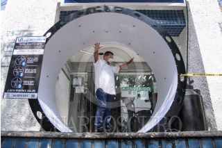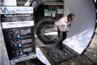 CIUDAD DE MÉXICO, 04ABRIL2020.- Autoridades de la alcaldía Tlalpan colocaron túneles sanitizadores en las inmediaciones de sus instalaciones y en Fiscalía General de Justicia (FGJ) de la colonia como medida de prevención al personal que continúa laborando ante la pandemia por coronavirus (Covid-19). FOTO: MARIO JASSO /CUARTOSCURO.COM
