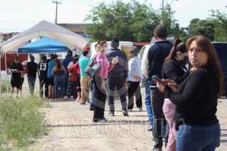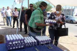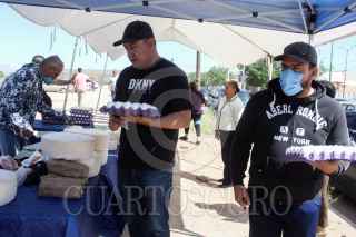 CIUDAD JUÁREZ, CHIHUAHUA, 04ABRIL2020.- La escasez del huevo se hace presente en la ciudad fronteriza. El precio del producto, ante las compras de pánico por la contingencia sanitaria, se ha disparado. Llegando a costar hasta 80 pesos por cartera de 30. Habitantes realizaron largas filas para adquirir el alimento de la canasta básica. FOTO: NACHO RUIZ /CUARTOSCURO.COM