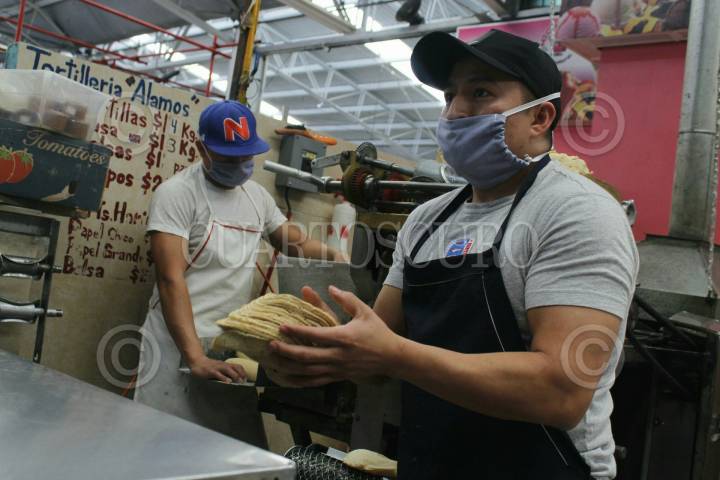 CIUDAD DE MÉXICO, 04ABRIL2020.- Ante la propagación de COVID-19 en el país, comerciantes del Mercado Álamos portan cubrebocas y guantes como medida de prevención. FOTO: MAGDALENA MONTIEL/CUARTOSCURO.COM