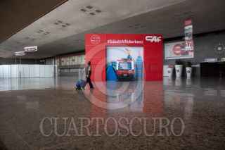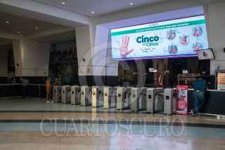CIUDAD DE MÉXICO, 05ABRIL2020.- Ante la propagación de COVID-19 en el país, la estación Buenavista del tren suburbano, implementó algunas medidas de prevención para reducir el riesgo de infección, entre las cuales destacan: el uso de cubrebocas y guantes de su personal, la sanitización de trenes, así como la colocación de dispensadores de gel antibacterial en la entrada y salida de la estación. FOTO: MAGDALENA MONTIEL/CUARTOSCURO.COM