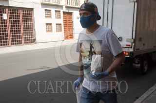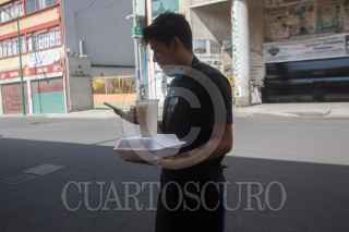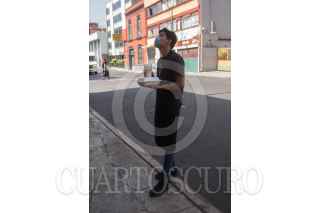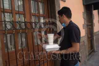 CIUDAD DE MEXICO. 06ABRIL2020.- Jóvenes repartidores de comida, trabajan horario normal. Algunos tienen suerte de que les reciban el pedido otros no. FOTO: VICTORIA VALTIERRA/CUARTOSCURO.COM