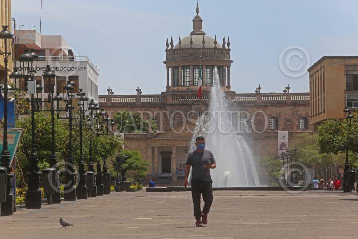 GUADALAJARA, JALISCO, 06ABRIL2020.- Las calles, Plazas y pasillos del centro histórico de la ciudad lucen solitarias, esto a causa de la alerta sanitaria que tiene en cuarentena a la ciudadanía por la problemática del coronavirus (Covid-19) que se vive alrededor del mundo. FOTO: FERNANDO CARRANZA GARCIA / CUARTOSCURO.COM