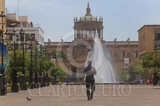 GUADALAJARA, JALISCO, 06ABRIL2020.- Las calles, Plazas y pasillos del centro histórico de la ciudad lucen solitarias, esto a causa de la alerta sanitaria que tiene en cuarentena a la ciudadanía por la problemática del coronavirus (Covid-19) que se vive alrededor del mundo. FOTO: FERNANDO CARRANZA GARCIA / CUARTOSCURO.COM