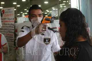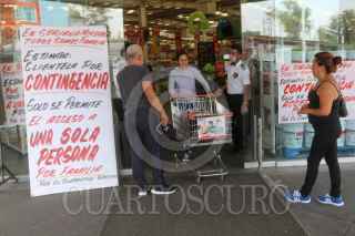 CIUDAD DE MÉXICO, 06ABRIL2020.- En un Centro Comercial se toman medidas sanitarias como la toma de temperatura, aplicación de gel antibacterial y el ingreso de una persona por familia para evitar el contagio del Covid-19. Las personas que presenten algún síntoma se les informa que deben regresar a casa, así como las que sean sorprendidas si acuden juntas dentro de las instalaciones. FOTO: GRACIELA LÓPEZ /CUARTOSCURO.COM