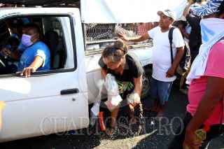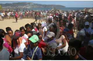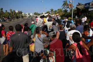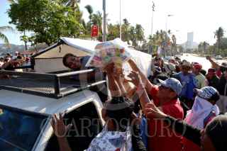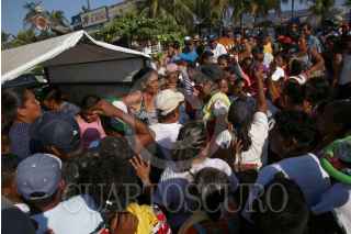 ACAPULCO, GUERRERO, 06ABRIL2020.- Vendedores de playas desesperados por la falta de apoyos ante la contingencia sanitaria por Covid-19 aglutinados se abalanzaron y jalonearon para tratar de conseguir una despensa que el ayuntamiento de Acapulco les entrego, durante la entrega desordenada el chofer de la camioneta que transportaba las despensas huyo del lugar sin que se entregaran, lo que molesto mas aun a los comerciantes que estuvieron esperando varias horas. FOTO: CARLOS ALBERTO CARBAJAL/CUARTOSCURO.COM