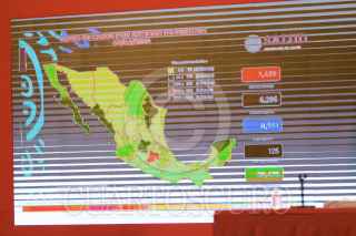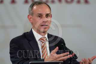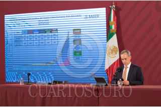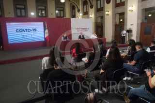 CIUDAD DE MEXICO. 06ABRIL2020.- Hugo López-Gatell Ramírez, subsecretario de Salud encabezo la conferencia en donde se da el reporte del Covid 19 en el país. José Luia Alomia y Víctor Hugo Borja lo asisten en el la platica con medios de comunicación. FOTO: VICTORIA VALTIERRA/CUARTOSCURO.COM