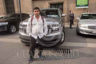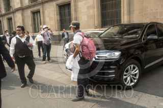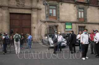 CIUDAD DE MEXICO. 06ABRIL2020.- Esta tarde el Presidente Andrés Manuel López Obrador se reunió a puerta cerrada con empresarios. Una protesta de meseros de la capital impidio que salieran por la calle de corregidora, medios de Comunicación no pudieron hablar con los hombres de negocios, quienes salieron de forma sigilosa. FOTO: VICTORIA VALTIERRA/CUARTOSCURO.COM