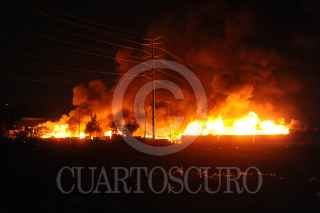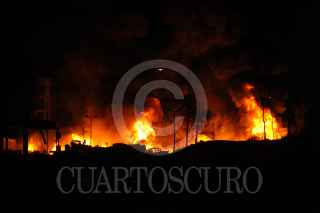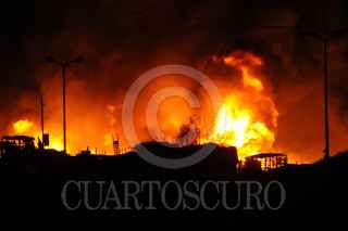 Ciudad de México, 07 abril 2020. Fuerte incendio en un predio aledaño a la Central de Abastos, en donde se almacenaban varias toneladas de madera y casuchas de pepenadores de este lugar. Alrededor de 1500 metros cuadrados calcinados, 200 evacuados y dos muertos en este incendio que se registró en avenida Cazuelas entre Eje 5 y Eje 6 en alcaldía de Iztapalapa. Foto: Luis Carbayo/cuartoscuro.com