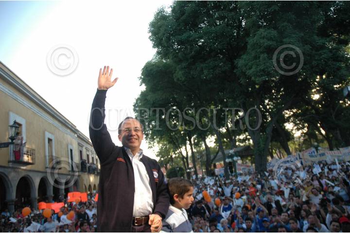TLAXCALA, TLAXCALA 05FEBRERO2006.- Felipe Calderón Hinojosa al finalizar un acto proselitista en la plaza de la constitución durante su gira por la entidad. FOTO: Iván Stephens/CUARTOSCURO.COM