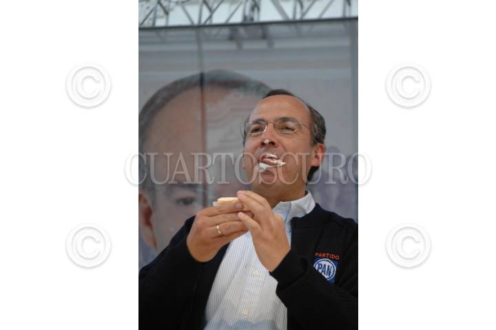 TLAXCALA, TLAXCALA 05FEBRERO2006.- Felipe Calderón Hinojosa al finalizar un acto proselitista en la plaza de la constitución durante su gira por la entidad. FOTO: Iván Stephens/CUARTOSCURO.COM
