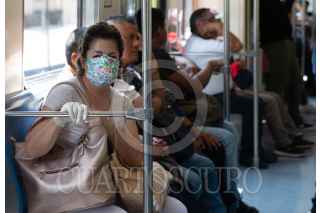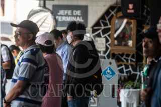 CIUDAD DE MÉXICO, 07ABRIL2020.- Son pocos los usuarios del tren suburbano que respetan las medidas preventivas para el contagio del virus COVID-19. Algunos optan por el uso de cubre bocas y guantes aunque no se logre la Sana Distancia recomendada por la Secretaria de Salud. FOTO: ANDREA MURCIA/CUARTOSCURO.COM