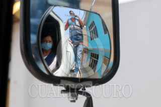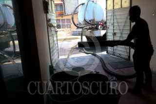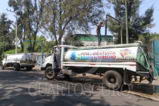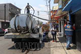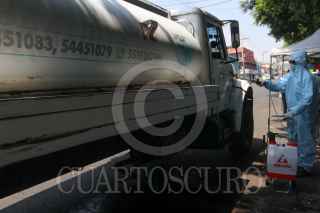 CIUDAD DE MÉXICO, 07ABRIL2020.- Debido a la escases de agua que existen en algunas colonias de la alcaldía Iztapalapa, el servicio de pipas de agua se ha acelerado para la distribución en distintos domicilios que lo solicitan por whatsapp. Previo al viaje, sanitizan la pipa de agua para evitar el posible contagio del Covid-19. En el día los trabajadores de pipas realizan de 6 a 7 viajes entre los cuales distribuyen a domicilios y unidades habitacionales. FOTO: GRACIELA LÓPEZ /CUARTOSCURO.COM