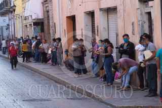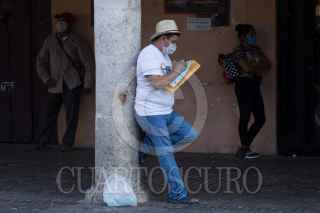 MÉRIDA, YUCATÁN, 07ABRIL2020.- Desde las cinco de la mañana y por segundo día consecutivo, cientos de personas se congregaron en el palacio de gobierno para tramitar su seguro de desempleo que consiste en recibir un apoyo económico por la cantidad de $2,500 pesos mensuales durante dos meses. Esto como parte del “Plan de apoyo e incentivos económicos” anunciado por el Gobernador del estado Mauricio Vila Dosal, debido a la contingencia ocasionada por el Coronavirus o Covid 19. Horas más tarde el gobierno del estado decidió cerrar la admisión de solicitudes a este apoyo ya que se recibieron un total de 57,000 solicitudes. FOTO: MARTÍN ZETINA/CUARTOSCURO.COM