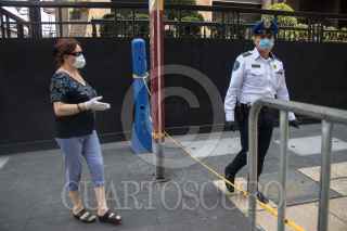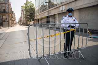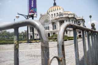 CIUDAD DE MEXICO. 07ABRIL2020.- Además de el cierre de la Calle de Madero en el Centro Histórico, hoy colocaron rejas para que la gente no transite por la explanada del Palacio de Bellas Artes. FOTO: VICTORIA VALTIERRA/CUARTOSCURO.COM