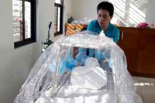 PUEBLA, PUEBLA, 07ABRIL2020.- La empresa DreamTM realiza de manera altruista las cápsulas CISEG (Cápsulas de Intubación segura), diseñadas por la doctora Cinthia Esperanza Jiménez, con las que se busca aislar a pacientes con Coronavirus Covid-19, para protección de los médicos y de otros pacientes. Está realizada con materiales de bajo costo para poder replicarse en cualquier parte del mundo de manera funcional y segura. FOTO: MIREYA NOVO/CUARTOSCURO.COM