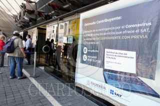 CIUDAD MÉXICO, 08ABRIL2020.- Las oficinas de gobierno han limitado sus operaciones tras declararse la emergencia nacional por Covid-19, como las oficinas del SAT que solo atienden a la ciudadanía a través de citas previas, esto para evitar conglomeraciones de personas. FOTO: MOISÉS PABLO/CUARTOSCURO.COM