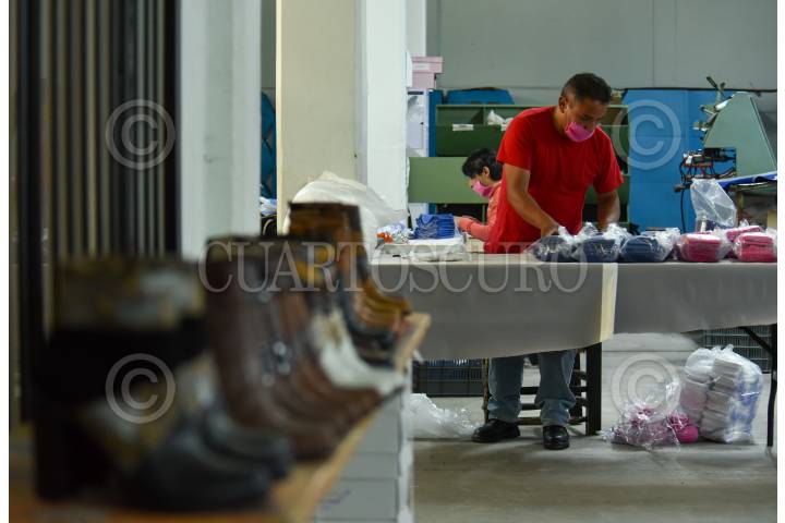 Zapateros de San Mateo Atenco tuvieron que cambiar los zapatos por cubrebocas, ante contingencia por COVID-19, el trabajo y ventas bajaron, y la fábrica D’Ansal reconfiguró su trabajo, y actualmente se encuentra elaborando cubrebocas y llevan elaboradas 300 mil piezas, desde hace cuatro semanas que empezaron a producirlos han dado empleo a muchas personas, las cuales trabajan desde sus casas respetando la cuarentena; a este proyecto invitaron a 20 fábricas zapateras para unirse a este trabajo, hacen un llamado al sector salud para que compren con ellos este tipo de productos para que no compren en reventa y a precios accesibles, y ante la falta de insumos en el sector salud, a los medidos y enfermeras que necesiten cubrebocas se los regalarán solo necesitan presentar su credencial. FOTO: CRISANTA ESPINOSA AGUILAR /CUARTOSCURO.COM