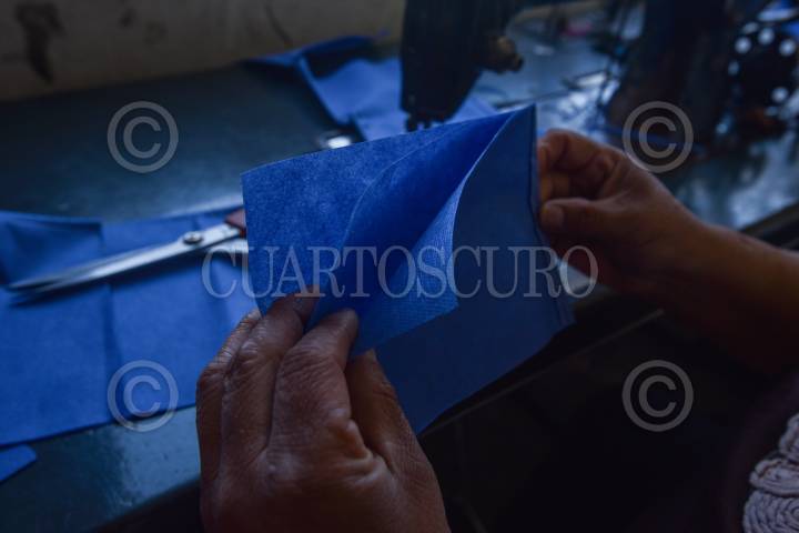 Zapateros de San Mateo Atenco tuvieron que cambiar los zapatos por cubrebocas, ante contingencia por COVID-19, el trabajo y ventas bajaron, y la fábrica D’Ansal reconfiguró su trabajo, y actualmente se encuentra elaborando cubrebocas y llevan elaboradas 300 mil piezas, desde hace cuatro semanas que empezaron a producirlos han dado empleo a muchas personas, las cuales trabajan desde sus casas respetando la cuarentena; a este proyecto invitaron a 20 fábricas zapateras para unirse a este trabajo, hacen un llamado al sector salud para que compren con ellos este tipo de productos para que no compren en reventa y a precios accesibles, y ante la falta de insumos en el sector salud, a los medidos y enfermeras que necesiten cubrebocas se los regalarán solo necesitan presentar su credencial. FOTO: CRISANTA ESPINOSA AGUILAR /CUARTOSCURO.COM