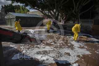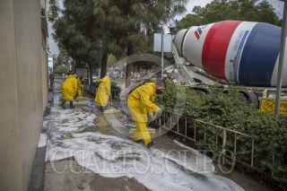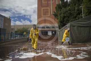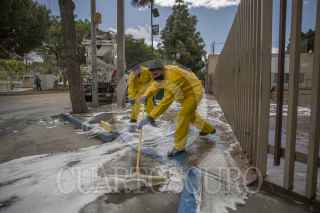 TIJUANA, BAJA CALIFORNIA, 09ABRIL2020.- Con el objetivo frenar la propagación de Coronavirus en la ciudad fronteriza, fue implementado un programa de lavado y desinfectado en áreas públicas para minimizar el riesgo de contagios masivos, esto con la colaboración del ayuntamiento de la ciudad con la empresa Cemex. Las labores de limpieza se realizaron esta mañana en el exterior del Hospital General y posteriormente en la clínica 1 del IMSS. FOTO: OMAR MARTÍNEZ /CUARTOSCURO.COM
