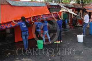 CIUDAD DE MÉXICO, 09ABRIL2020.- Elementos de la Policía y de Protección Civil realizaron un operativo para levantar a los comerciantes que se encontraban vendiendo mariscos, pescados y mojarras en el mercado La Vieja Viga, para la celebración de Semana Santa. Las autoridades del gobierno continúan invitando a la población a no acudir a lugares concurridos y quedarse en casa. FOTO: GRACIELA LÓPEZ /CUARTOSCURO.COM