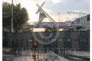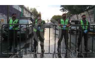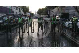 CIUDAD DE MÉXICO, 09ABRIL2020.- En el marco de la Emergencia Sanitaria Nacional por la pandemia del Coronavirus, elementos de la Policía resguardan Avenida Ermita Iztapalapa, a la altura del Santuario La Cuevita, con motivo de la 177 Representación de Cristo. El evento será a puerta cerrada para evitar el posible contagio del Covid-19 FOTO: GRACIELA LÓPEZ /CUARTOSCURO.COM