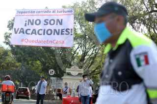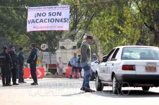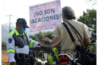 TEPOZTLÁN, MORELOS, 10ABRIL2020.- Desde la tarde de ayer, habitantes de este municipio tomaron la decisión de cerrar los accesos a los turistas, esto con el fin de evitar contagios por Covid-19. Apoyados por elementos policiacos y de transito instalaron retenes en las entradas al pueblo, permitiendo el ingreso solo a quienes demuestren ser vecinos o distribuidores de alimentos. Esta medida también fue tomada por el municipio indígena de Hueyapan al oriente del estado, y en el municipio de Ocuituco se aplicará un toque de queda de 21:00 a 06:00 horas, con el fin de proteger a la población de la epidemia del Covid-19. FOTO: MARGARITO PÉREZ RETANA /CUARTOSCURO.COM