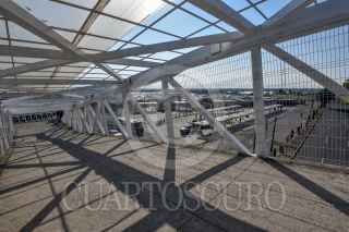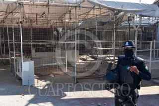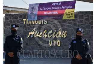 Por primera vez él Tianguis Aviación Autopan cerró sus puertas ante la contingencia por CIVID-19 como una forma de evitar aglomeraciones, desde la tarde del jueves fue resguardado el lugar por policías municipales; en este lugar se dan cita todos los viernes comerciantes de ropa, frutas y verduras, alimentos, entre otras cosas no sólo Del Valle de Toluca si no también de otros estados. FOTO: CRISANTA ESPINOSA AGUILAR /CUARTOSCURO.COM