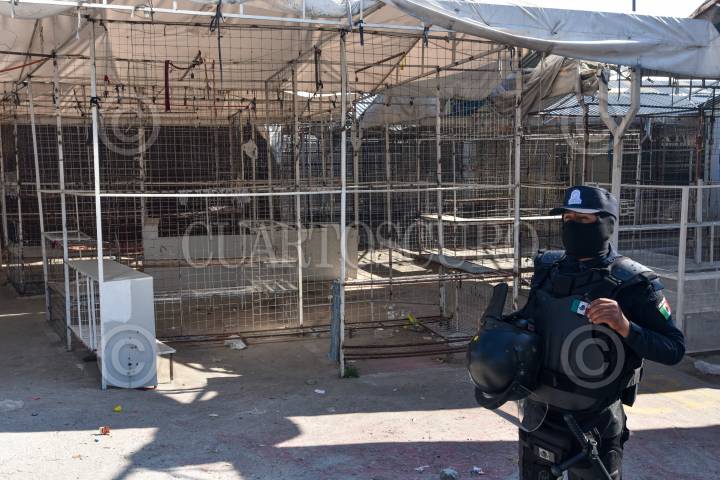 Por primera vez él Tianguis Aviación Autopan cerró sus puertas ante la contingencia por CIVID-19 como una forma de evitar aglomeraciones, desde la tarde del jueves fue resguardado el lugar por policías municipales; en este lugar se dan cita todos los viernes comerciantes de ropa, frutas y verduras, alimentos, entre otras cosas no sólo Del Valle de Toluca si no también de otros estados. FOTO: CRISANTA ESPINOSA AGUILAR /CUARTOSCURO.COM