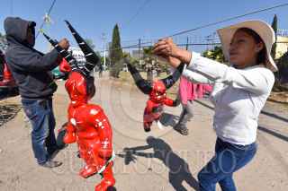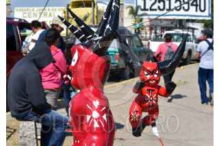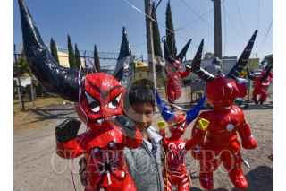 Una tradición en Semana Santa es la elaboración de Judas, y el señor Juan Alvarez, artesano pirotécnico junto con su familia no dejan que esta traición se pierda y cada año vende estas figuras de cartón a las afueras de la Central de Abastos de Toluca, este año a pesar de la contingencia por COVID-19 sus ventas no bajaron, la población ha buscado sus Judas para el Sábado de Gloria. FOTO: CRISANTA ESPINOSA AGUILAR /CUARTOSCURO.COM
