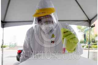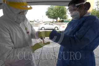 MONTERREY, NUEVO LEÓN 11ABRIL2020.- Se instalan tres módulos para ampliar la detección de casos de coronavirus Covid-19 en la entidad en puntos drive-thru. Se aplicarán a personas con síntomas como fiebre, tos, dolor de garganta y malestar en general, así como personas que hayan tenido contacto con un caso confirmado de Covid-19. FOTO: GABRIELA PÉREZ MONTIEL / CUARTOSCURO.COM