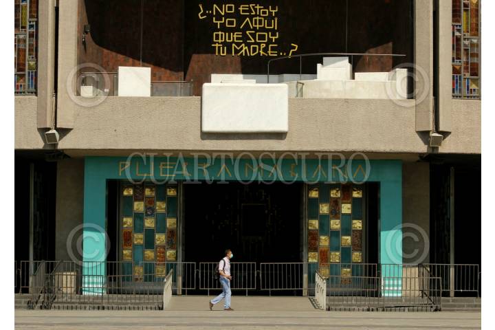 CIUDAD DE MÉXICO, 11ABRIL2020.- Ante la propagación de COVID-19 en el país, este sábado santo las puertas de la Basílica de Guadalupe permanecieron abiertas, pero delimitadas por vallas metálicas para impedir el acceso de los feligreses. FOTO: MAGDALENA MONTIEL /CUARTOSCURO.COM